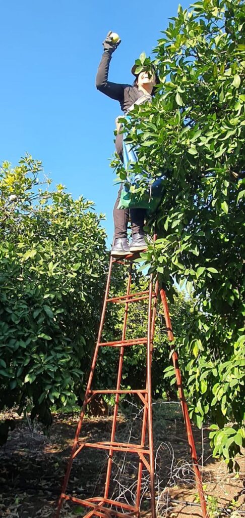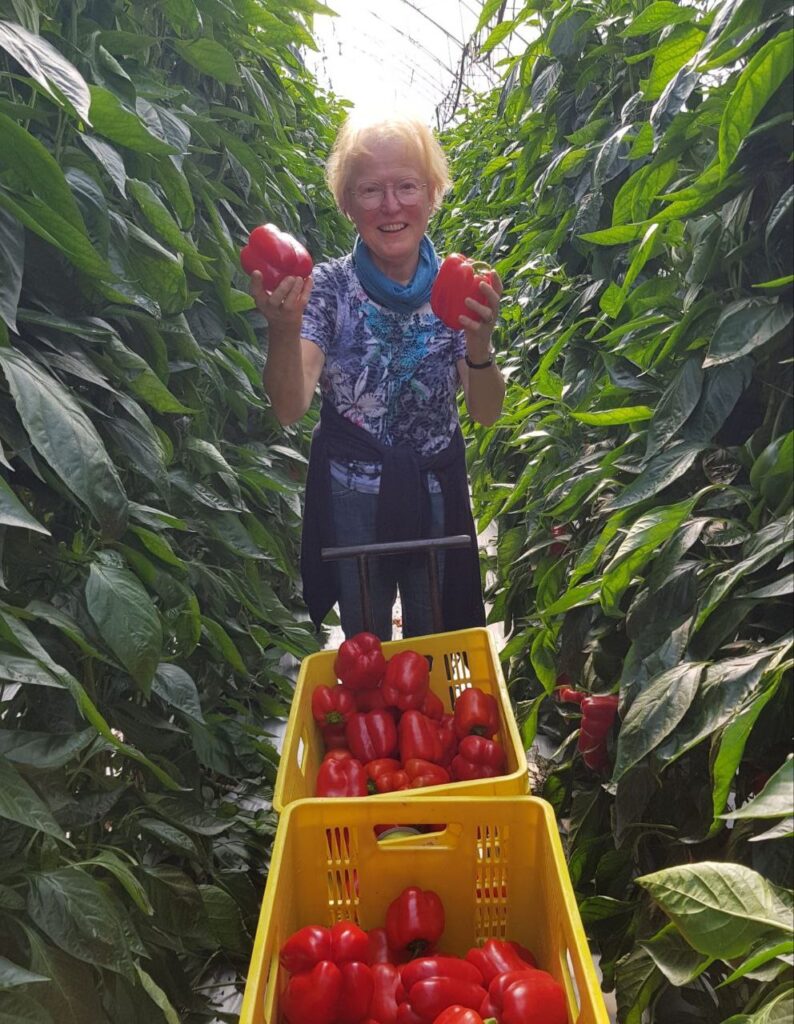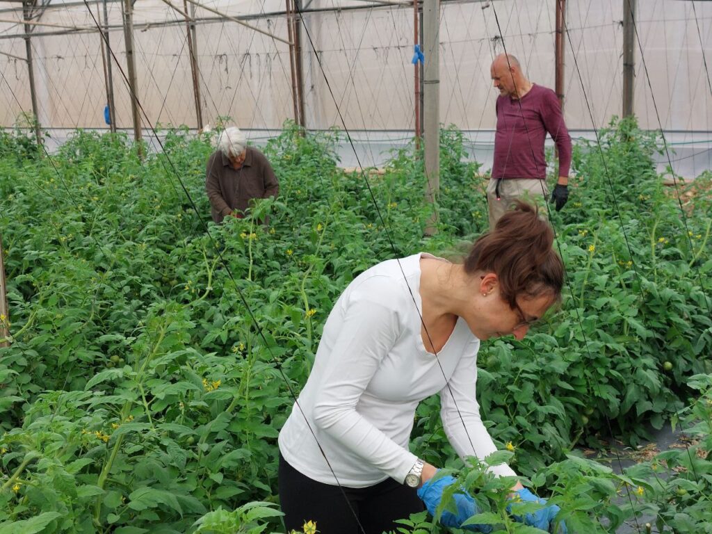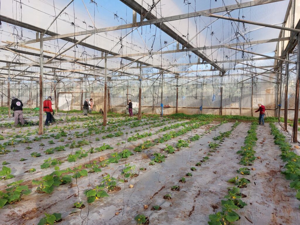 Zu zwei Bauern haben wir längerfristige Beziehungen aufgebaut. Im Winter und im Frühjahr 2024 haben wir bei einem Bauern in Geva Carmel überwiegend in großen Gewächshäusern geholfen, Tomaten, Paprika, Auberginen und Gurken zu pflegen und zu ernten.